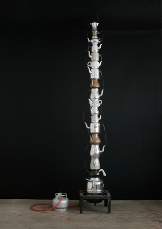 Johannes Vogl, Dampfs�ule, 2011 Wasser, Dampf, Keramik, Kupfer, Stahl, Plastik, Aluminium 450 x 100 x 40 cm | |||