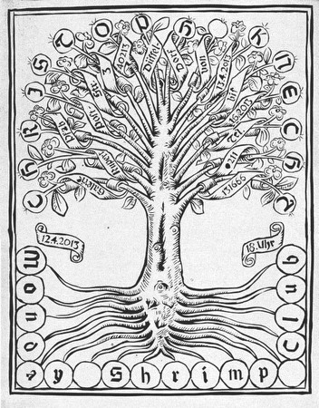 Christoph Knecht Monday Shrimp Club, 2013 Ausstellungsplakat, 53 x 42 cm, Linonschnitt | |||