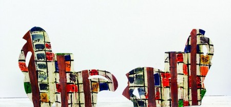 Betty Woodman, Grey Diptych 2010 glazed earthenware, acrylic paint 79 x 34 x 8" | |||