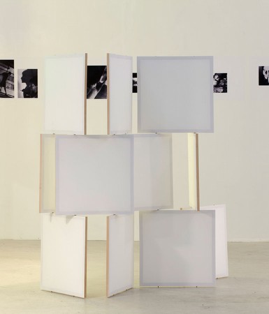 | Dream and Action find Equal Support in It Pia Rönicke January 7 - February 18, 2012 Opening: Saturday, January 7th, 4 - 9pm Dream and action find equal support in it is a story of reflections, composition and decomposition. Three images have initiated the project: a photograph of a bathroom and a window seen through a mirror in the bedroom of the Eileen Gray E1027 house, a drawing of ‘the mirror room’ by the dancer Loïe Fuller from 1893, and the photograph of a circle of a woman five time reproduced by Hannah Hoch from 1917. The exhibition is a tribute to these free and visionary three women too, and underlines how their creation allow them to break the rules of their society. Beyond these women’s itinary, the artist interrogates the art potentialities and limits, and its relation to utopia. Pia Rönicke is fascinated by the way Eileen Gray’s design challenges notions of ideal. The way how context is included as a factor that can change the concept and function of an object, and more, the way how it interacts with space. During a conversation between Eileen Gray and the architect Jean Badovici released with the title “From eclecticism to doubt” in the magazine L’Architecture Vivante in 1929, Gray states: “The influx of light and air can be regulated… like the shutter of a camera.” The house becomes a viewfinder, a constructed frame through which to see the world. Like an echo of this thought, Pia Rönicke creates a series of screens using the same system as Eileen Gray’s block screens. They function as room dividers and as surfaces for projection. Slide images are projected on a mirror, which is sent back onto a paper screen, transforming the image as well as negotiating our spatial conceptions. Other elements ponctuate the exhibition. A film, shot in the house E1027 plays with this ambiguity too. Through mirrors, the camera, as an architect map upside down, films the ceiling’s reflection and house’s fragments. The different points of view bring the illusion of walking in a different house, but distorsion comes from focus and movement. Slowly, the camera seeks lines, curves, rooms, hollows and stairs, in a space as imaginary as concrete. We are led by a voice over which tells us how things were thought out. Elements and walls float, the mirror’s movement builds a rhythm. The record reflects different levels of the house, reavealing its lacks. The artist aim is not to document the house’s present condition, she thinks of it as a place without present reality but which comes alive through its conception. The exhibition space is partially lit with paper lamps created from photocopies made by the artist in the period when she was collecting images and texts of Eileen Grays work. To refer to the Hannah Höch montage, where reflection is becoming a political act as this time women are seen and gazed by other women, Pia Rönicke creates a series of posters called Albums : she mirrors women’s work in the fields of design, architecture, performance and art. A series of collages, unmounted but photographed, are present in the exhibition too. Pia Rönicke uses assemblage as a medium, extending thereby the Dada montages tradition. From her early animated films to her recent re-creation of design objects, the artist revisits our modern history and brings in memory. In each of her projects are associated texts, staging space, objects production, films revealing her fascination for modernist utopia as well as underlining its disenchanted aspect. | ||||