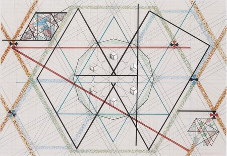 Monir Shahroudy Farmanfarmain, Geometric design with mirror, 2000 Coloured inks and mirror, 67 x 97 cm (detail) courtesy of The Trustees of the British Museum | |||